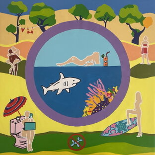 Foto mit Acryl koloriertSiebdruck auf Dibond30 x 30 cmPhoto colored with acrylicScreen print on Dibond30 x 30 cm